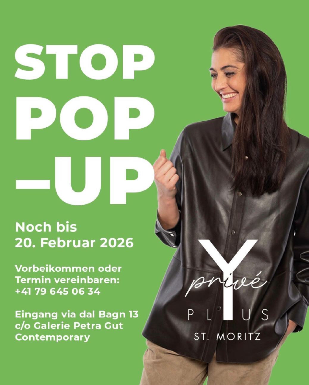 Eigentlich müsste die Anrede «Liebe Yplus-Privé-Kundin» heissen. Sie wissen ja, es gibt ein neues Konzept und das kommt ohne klassische Boutique aus. Denn Privé bedeutet, noch persönlicher, noch mehr auf Sie zugeschnitten. Mit der Yplus-Lederkollektion, ergänzt mit Strick, Blusen und Accessoires, können Sie Ihre eigene Gardedrobe noch individueller gestalten und mit der umfangreichen Farbpalette finden Sie für jede Saison den passenden Look. Zu sehen gibt es die Musterkollektion neu in der Galerie Petra Gut in St. Moritz.